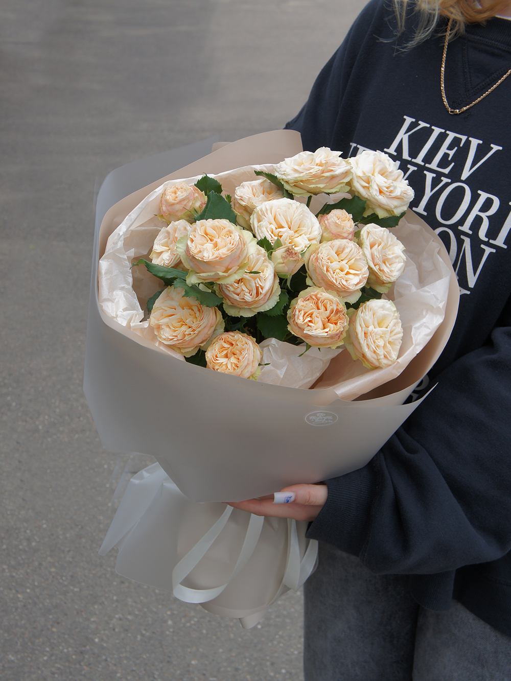 Монобукет из 3х кустовых пионовидных роз