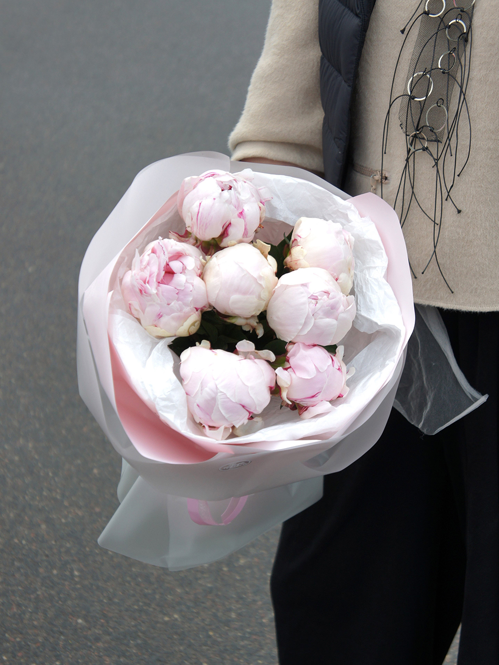 Монобукет из 7 пионов Рейн Хортенз